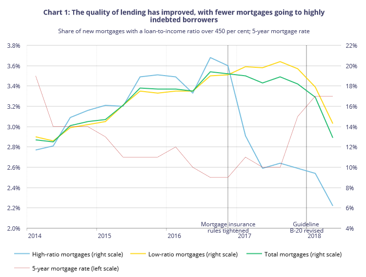 Mortgage rules implemented over the past two years, along with rising interest rates, have worked to improve credit quality and reduce the number of highly indebted borrowers in the market.
